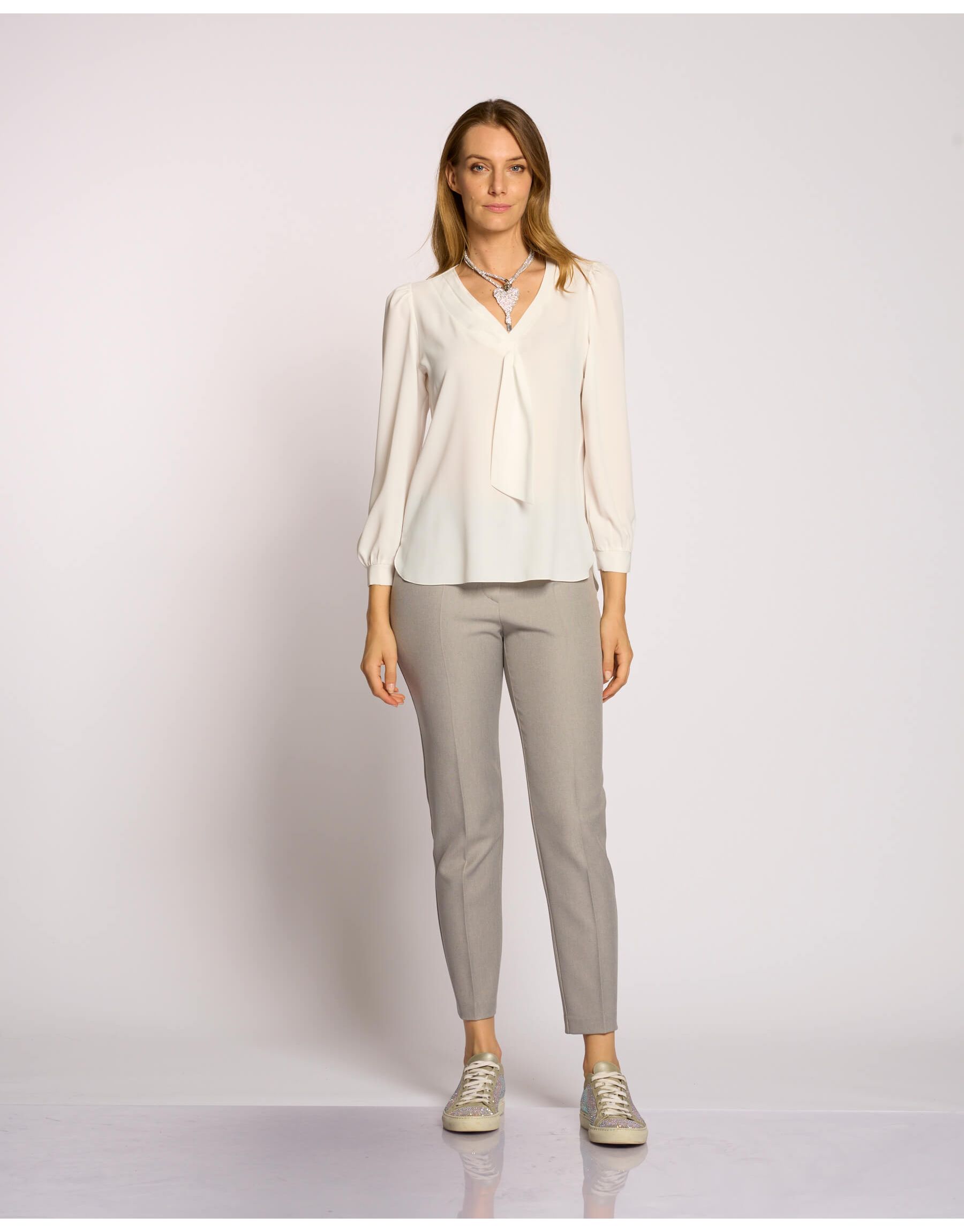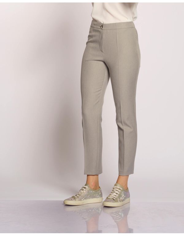 Pantalone linea stretta in bistretch diagonale con zip e bottone