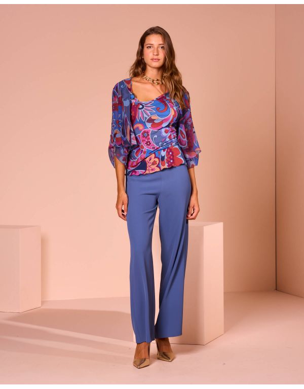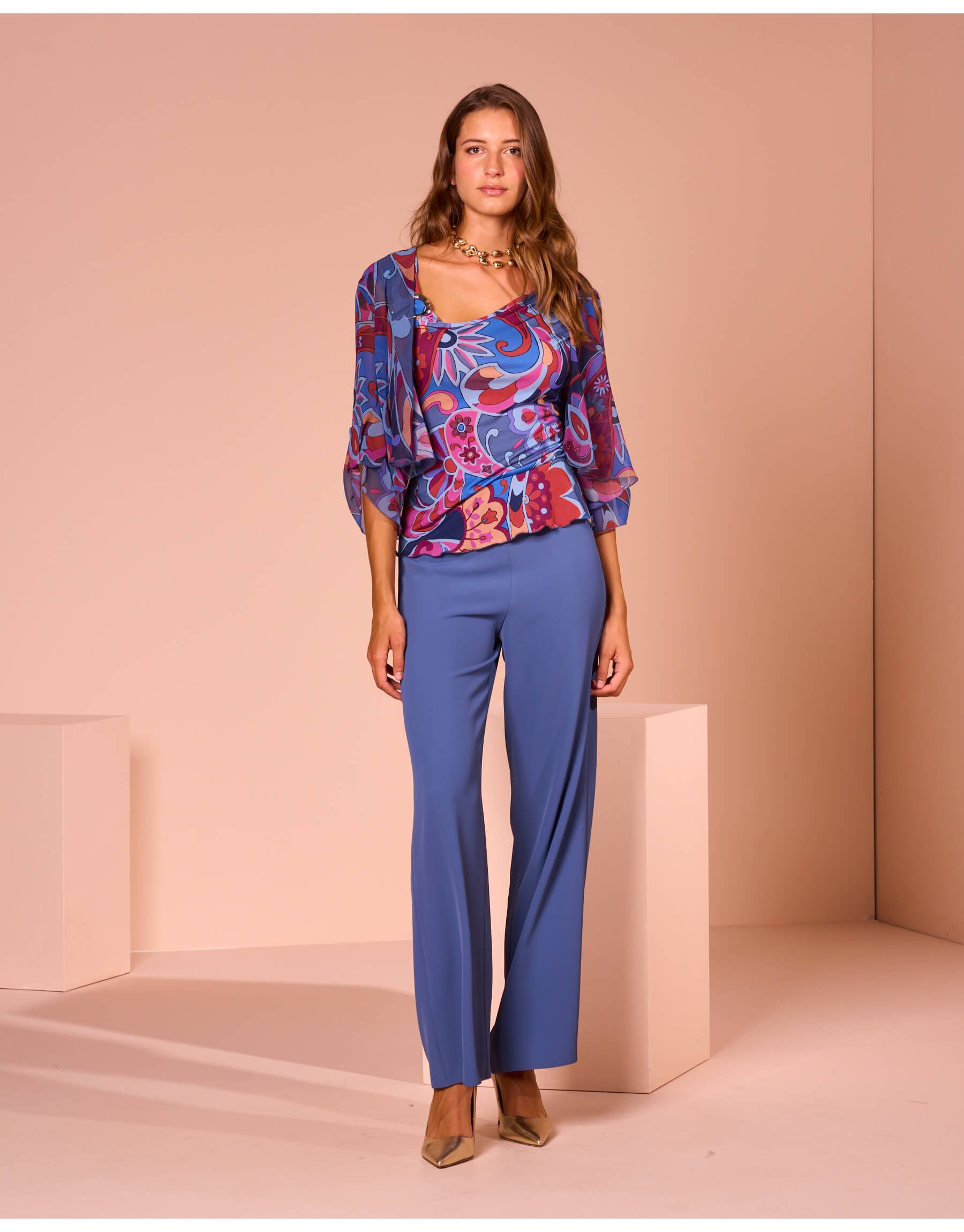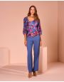 Top in jersey fantasia con scollo asimmetrico e fibbia sulla spallina