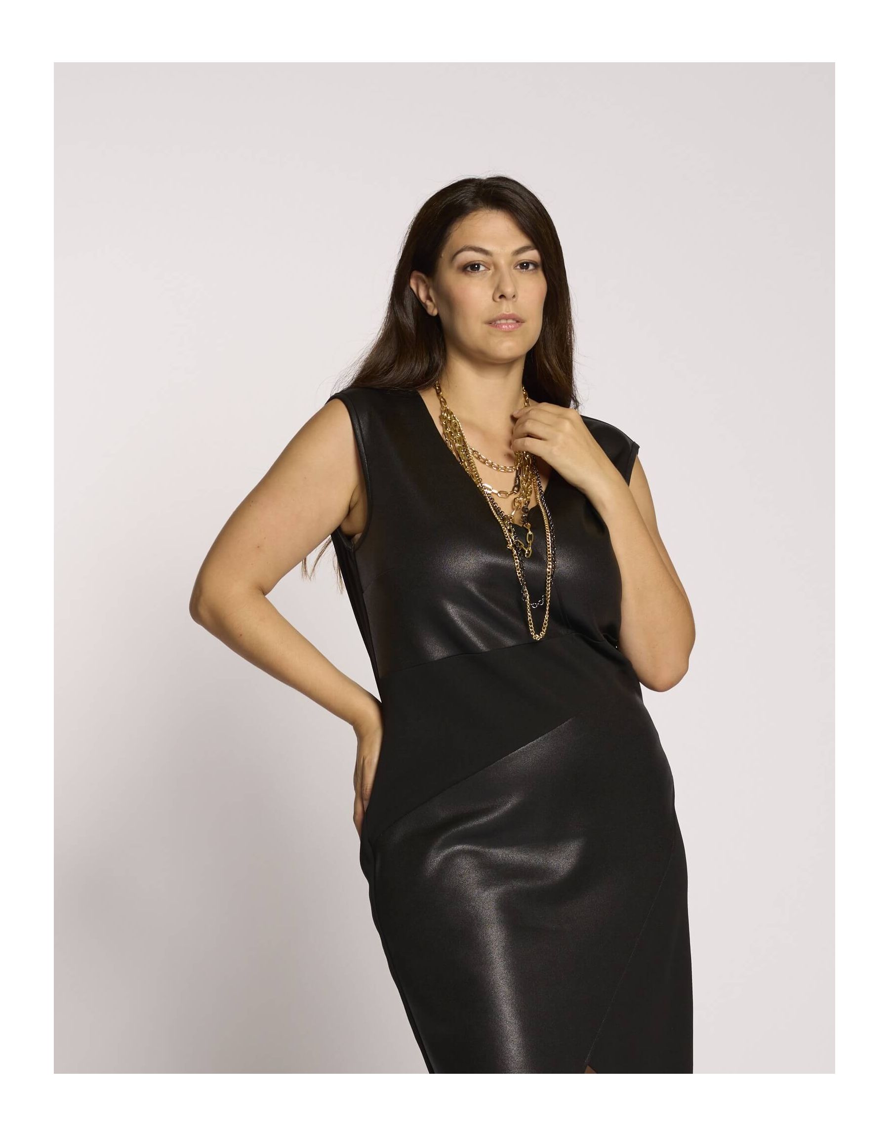 Tubino bimaterico in scuba crêpe e scuba pelle