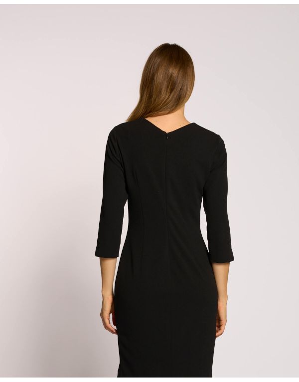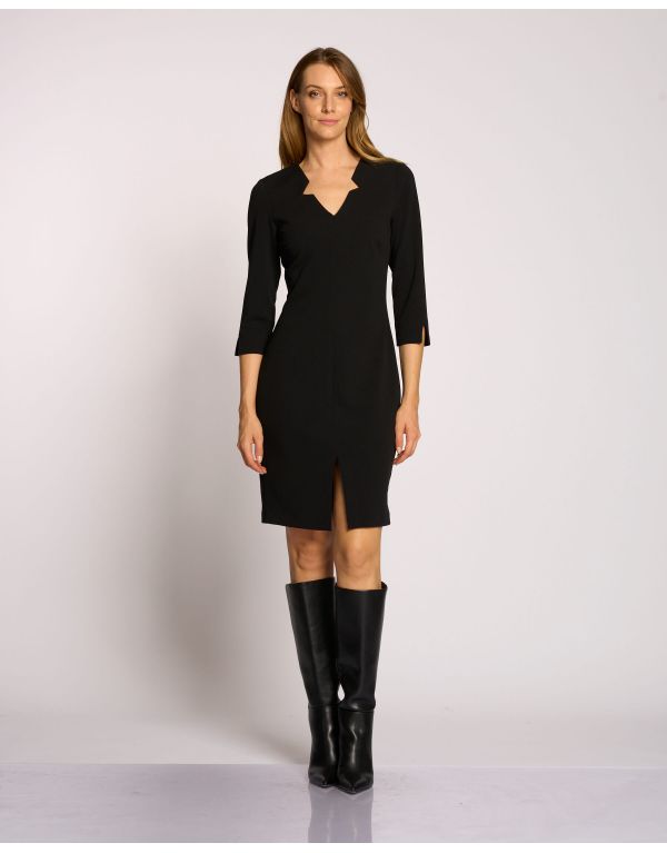 Tubino in scuba crêpe con scollo a V, manica a tre quarti e spacco