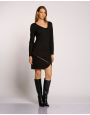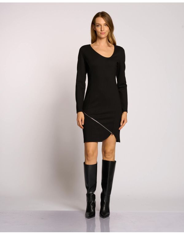 Vestito in punto Milano a maniche lunghe con zip sul fondo e scollo asimmetrico